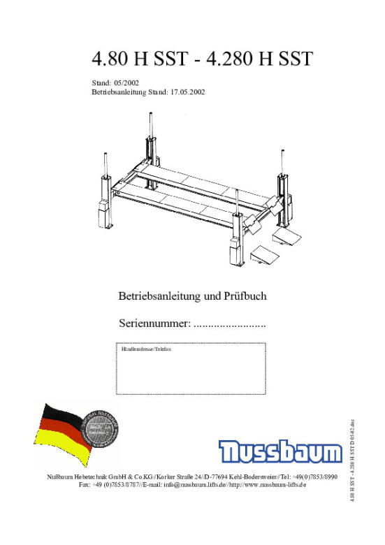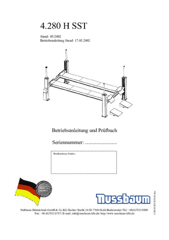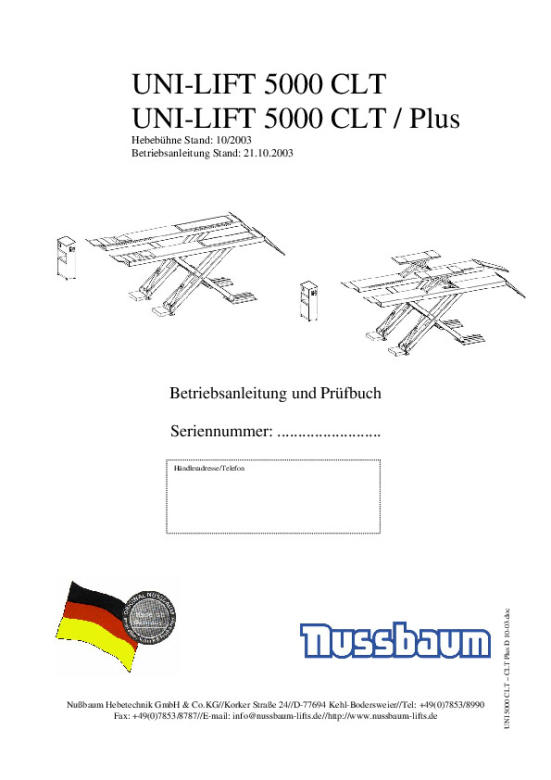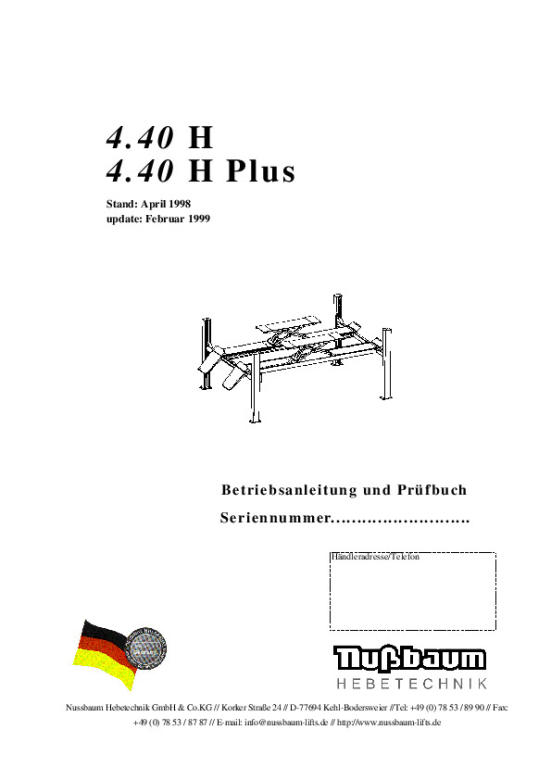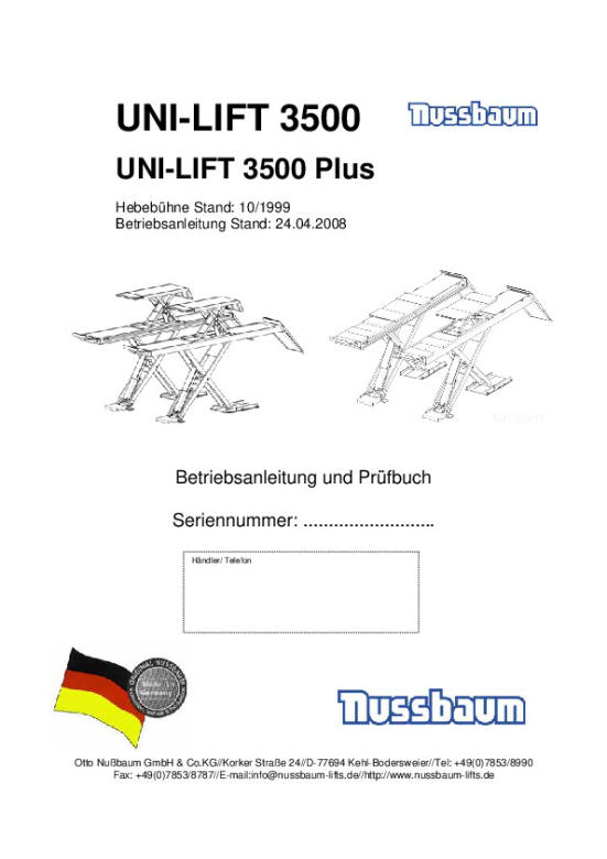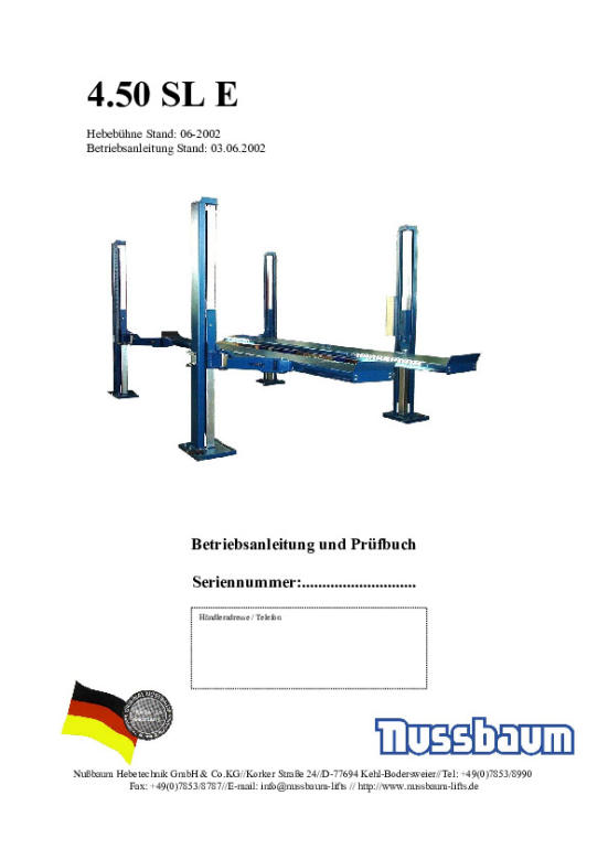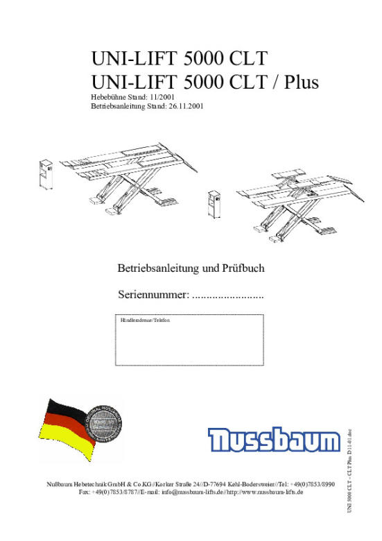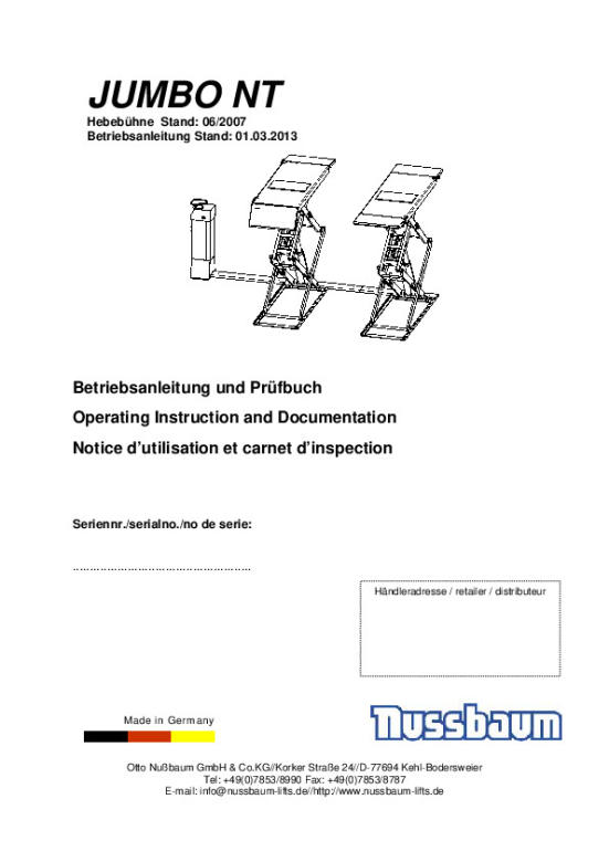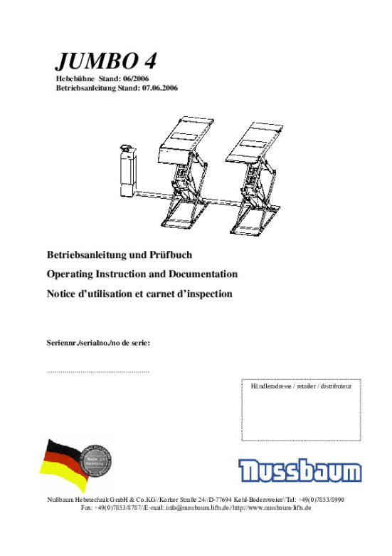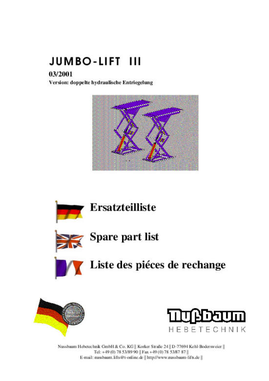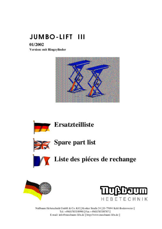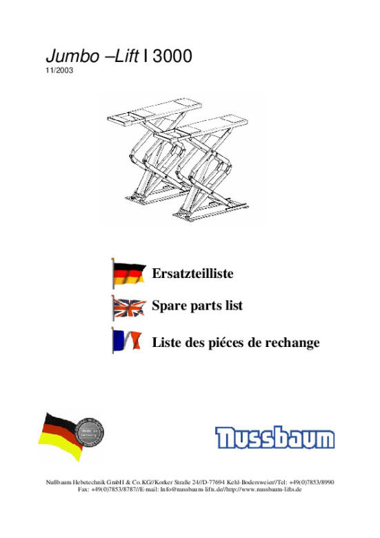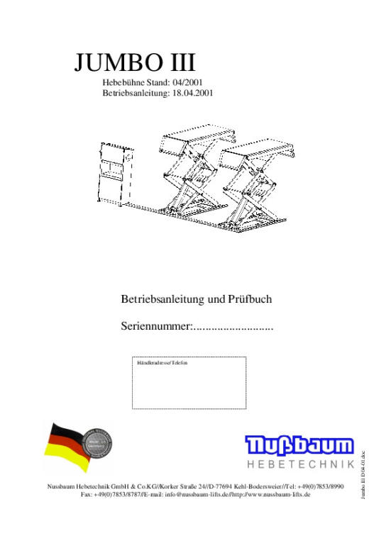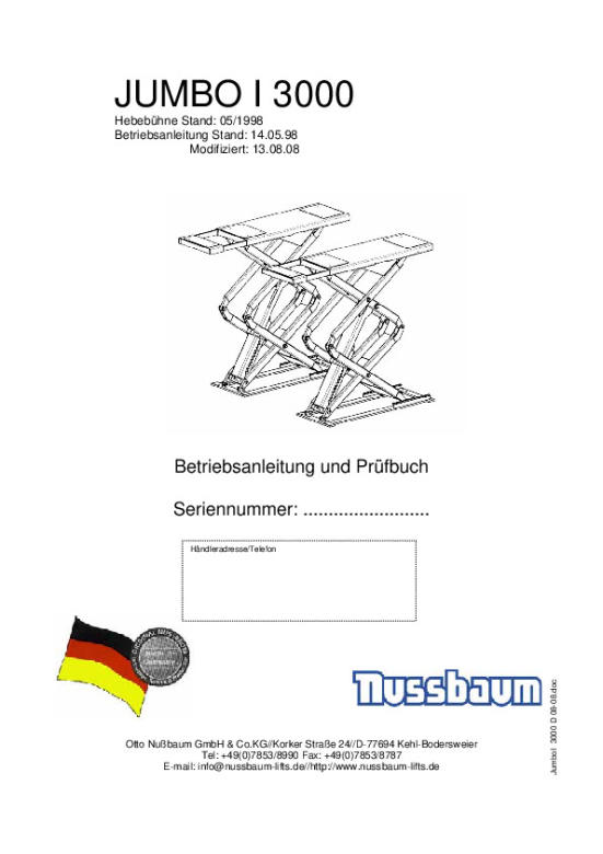 Langue: Prüfbuch Jumbo Lift I 3000 / 3000 Plus