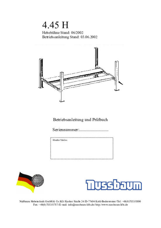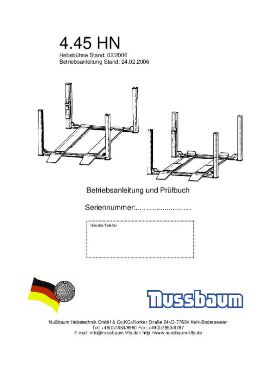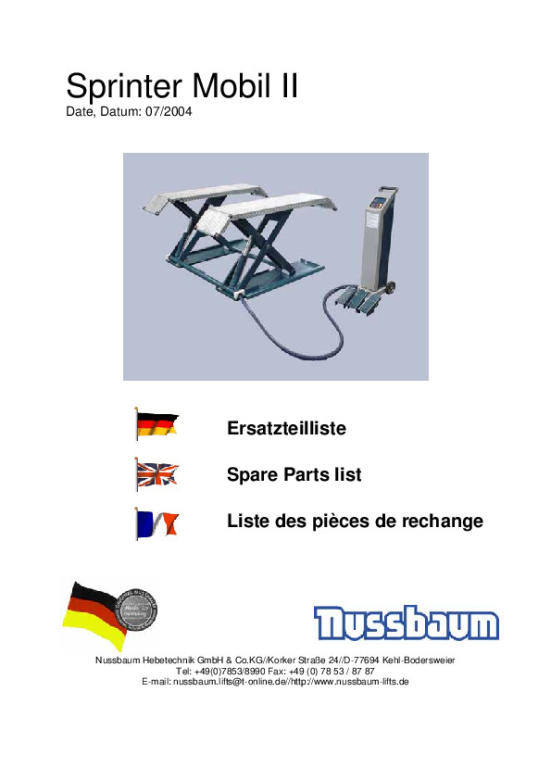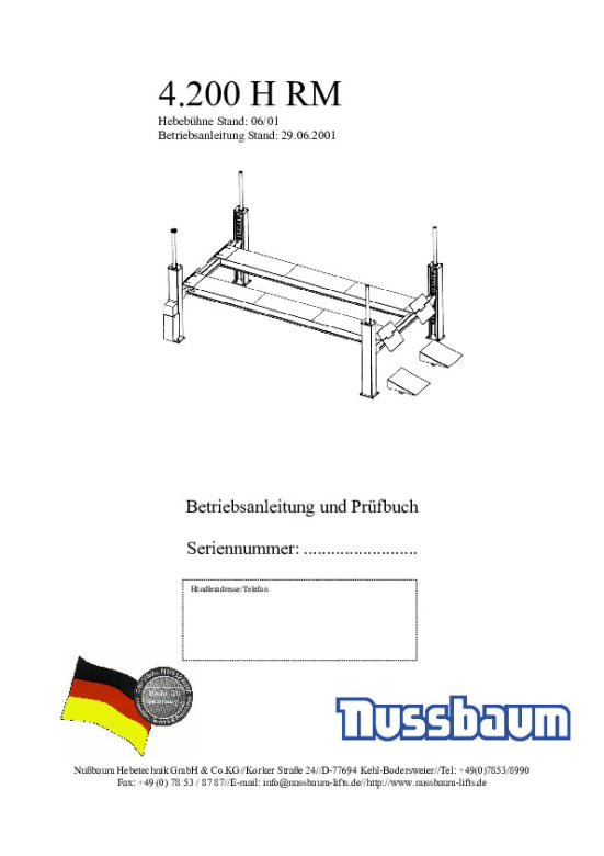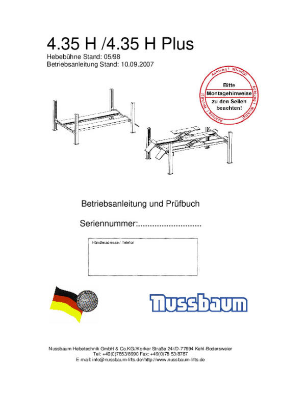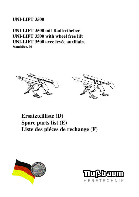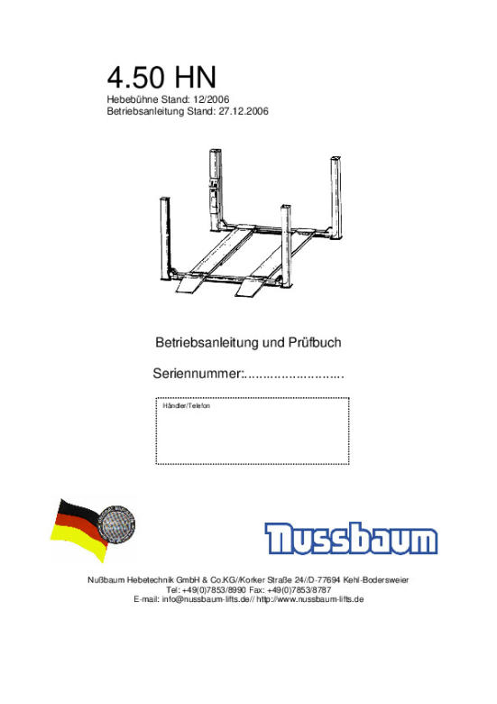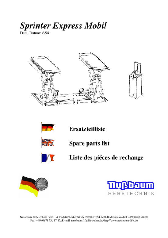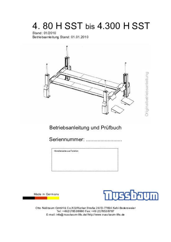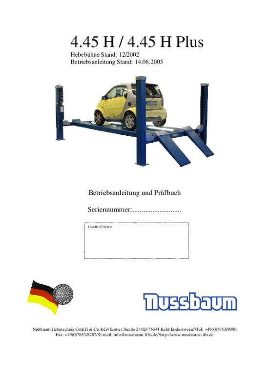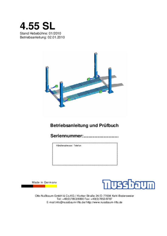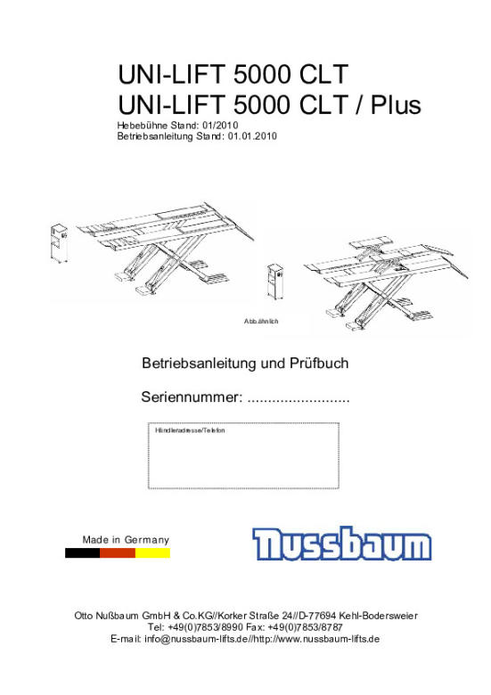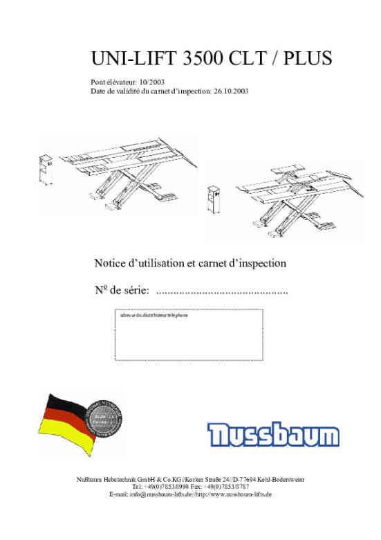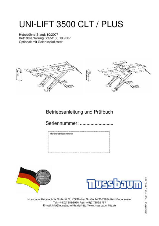 Langue: Prüfbuch Jumbo Lift I 3000 / 3000 Plus