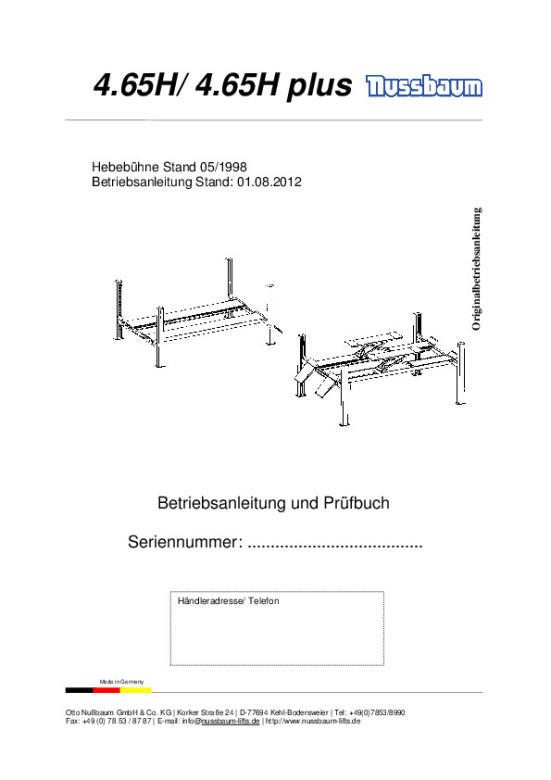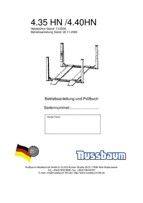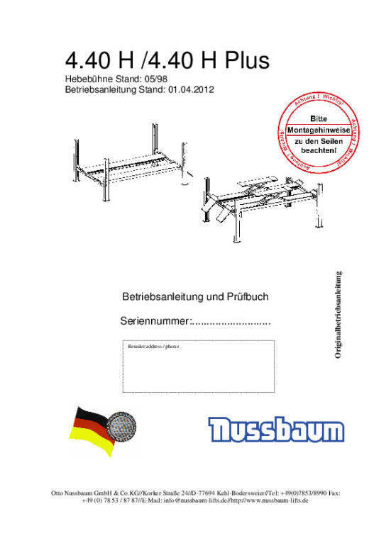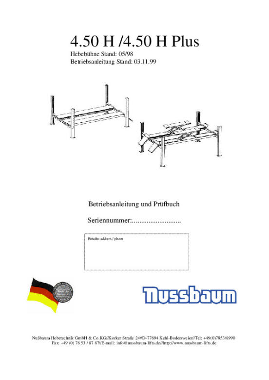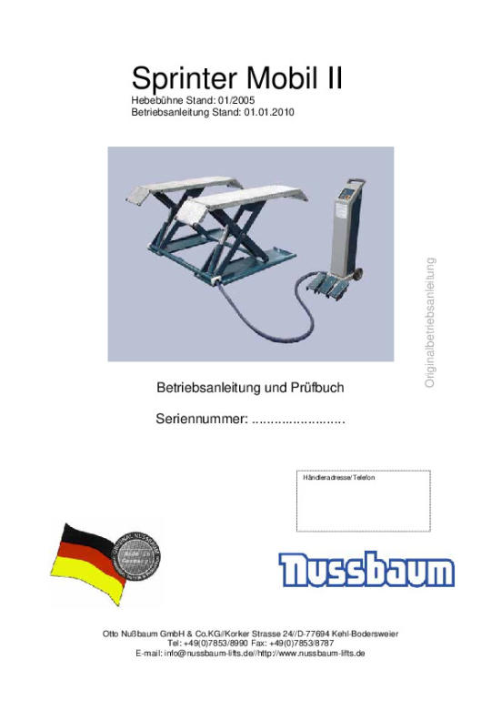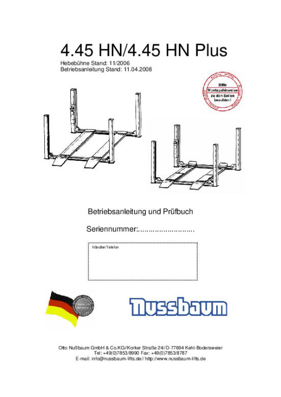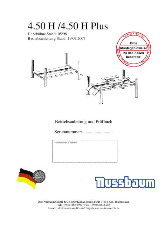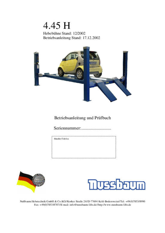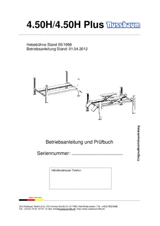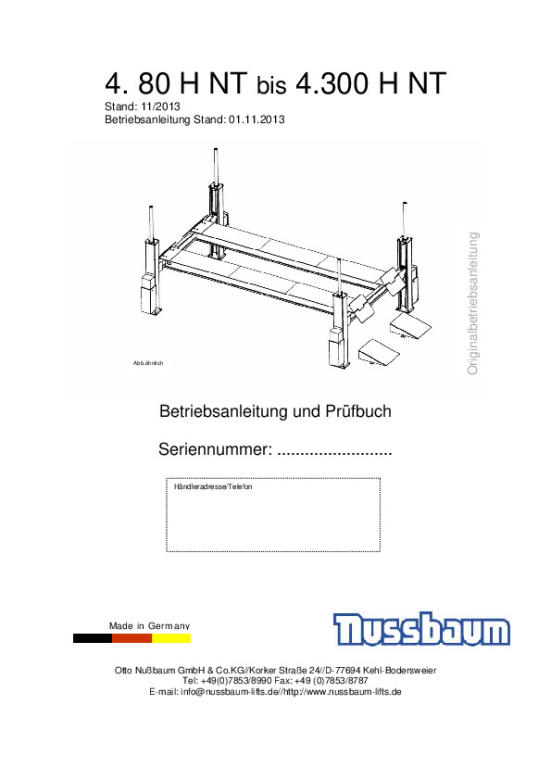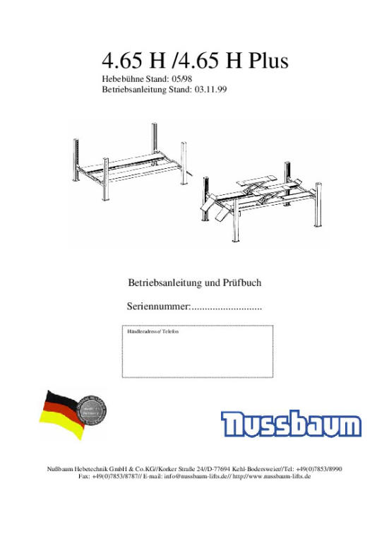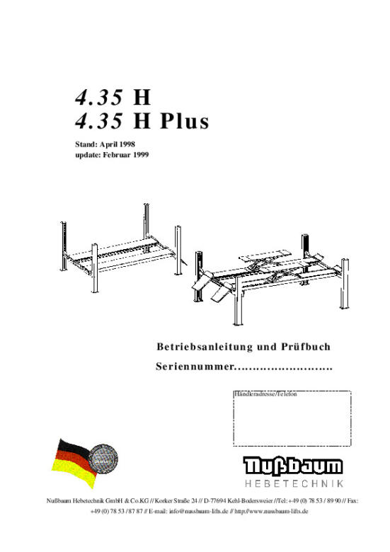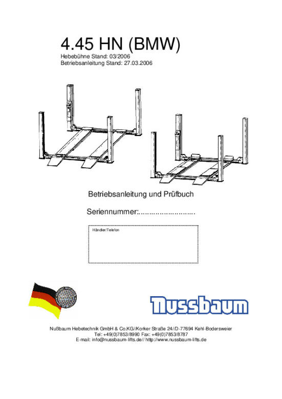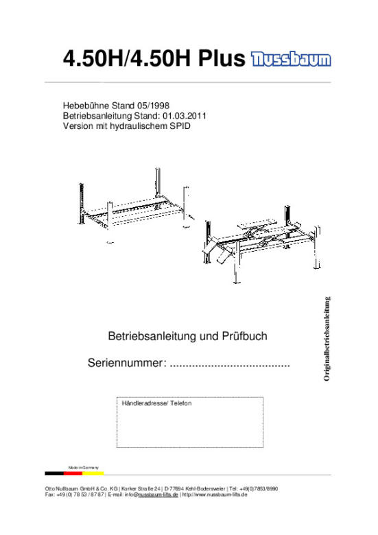 Langue: Prüfbuch Jumbo Lift I 3000 / 3000 Plus