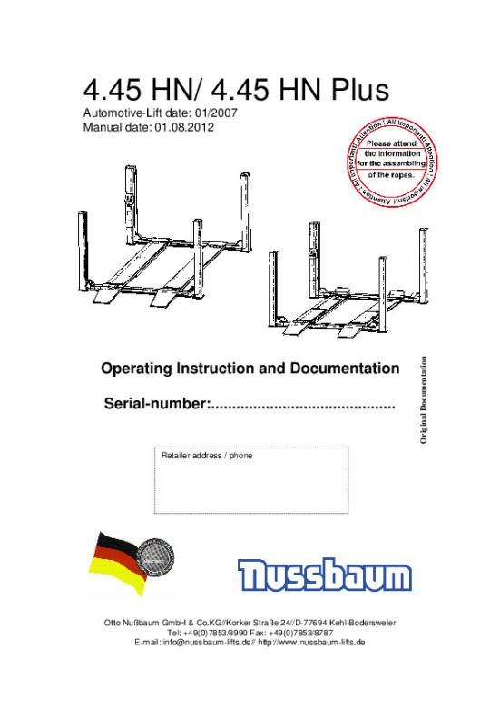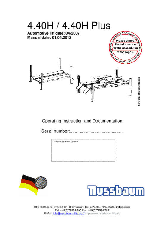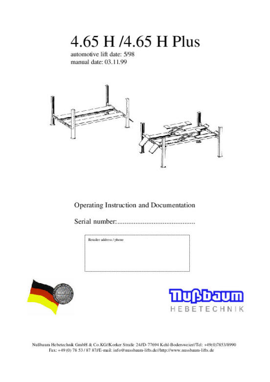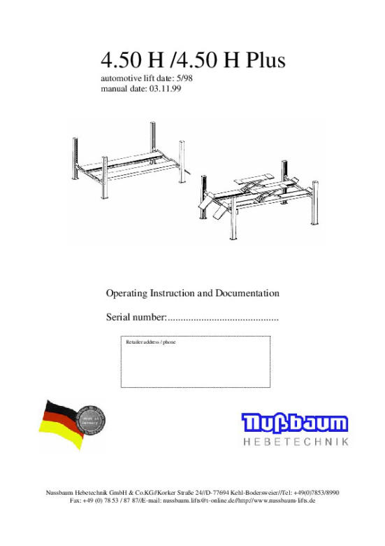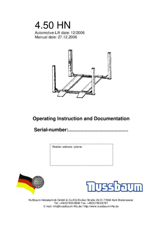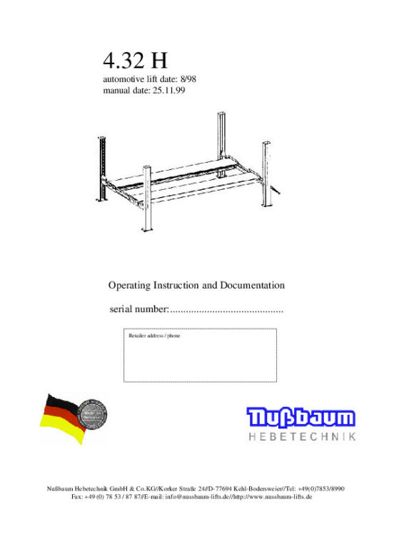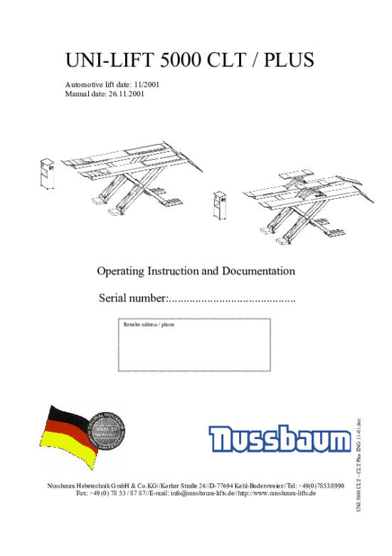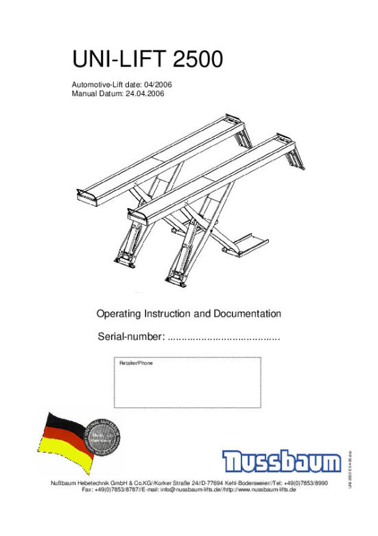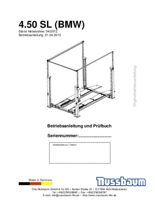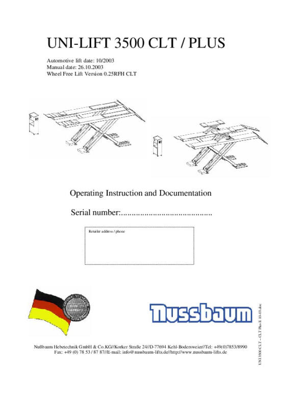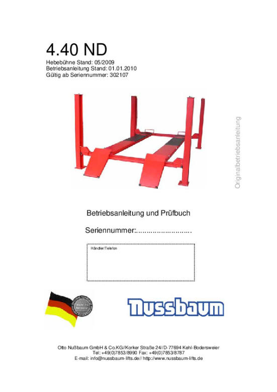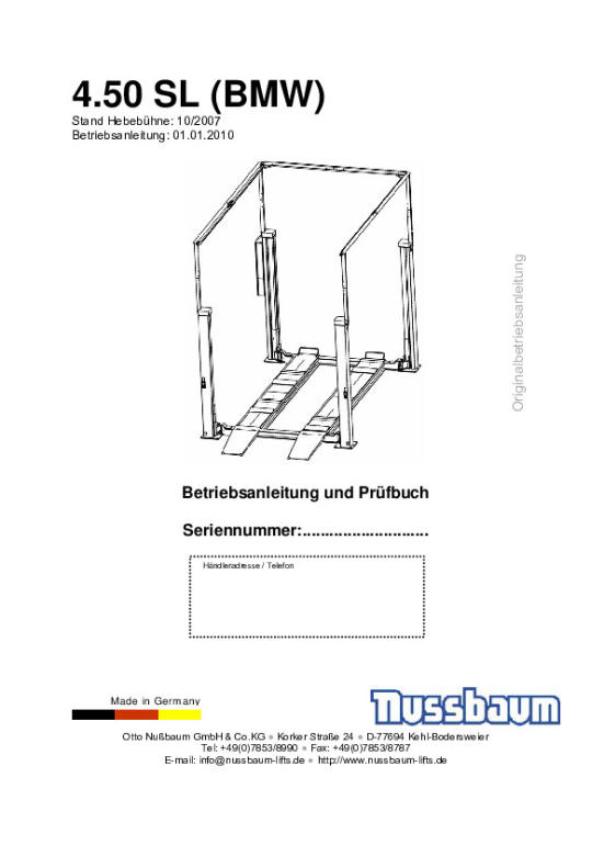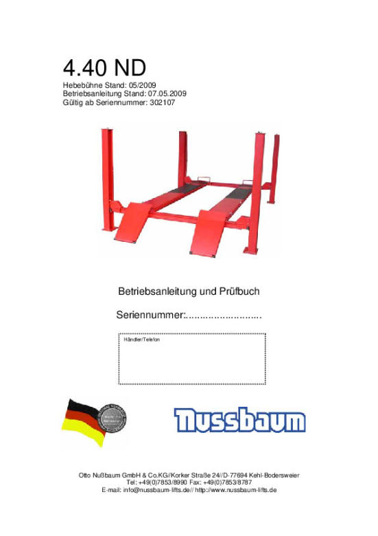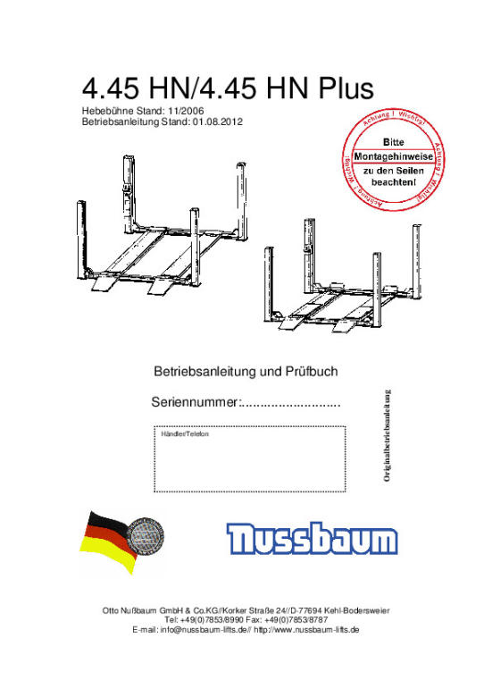 Langue: Prüfbuch Jumbo Lift I 3000 / 3000 Plus