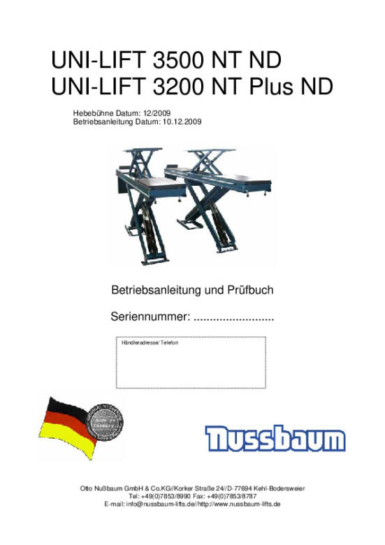 Langue: Prüfbuch Jumbo LIft NT 3000