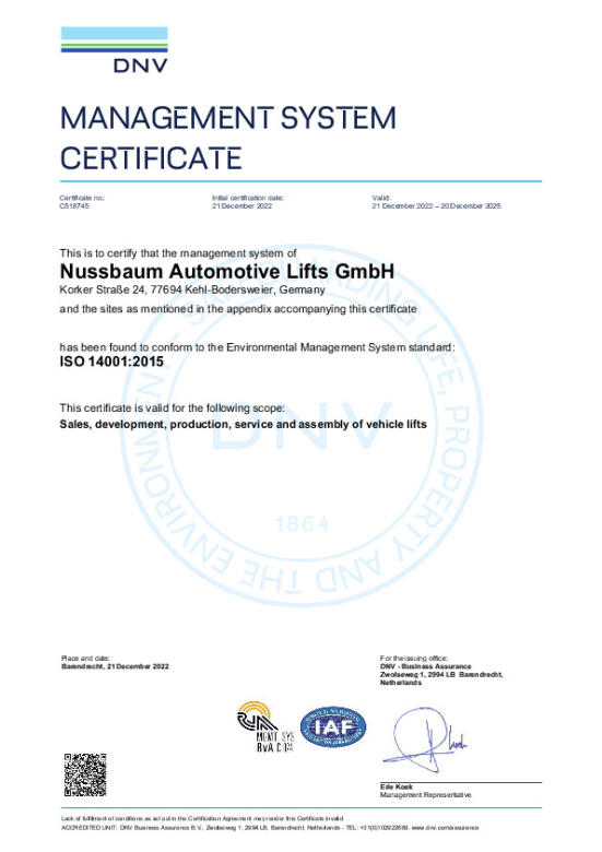ISO 14001:2015 Nussbaum Automotive Lifts GmbH