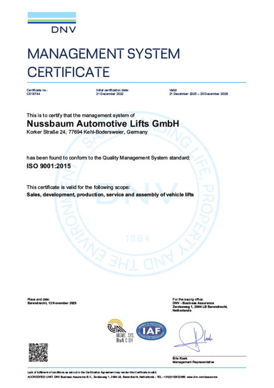 ISO 9001:2015 Nussbaum Automotive Lifts GmbH