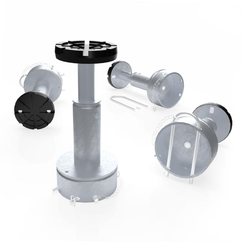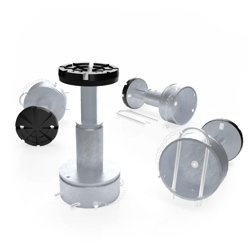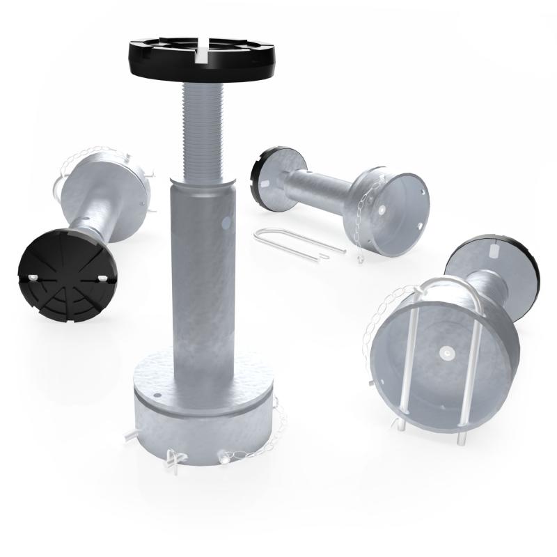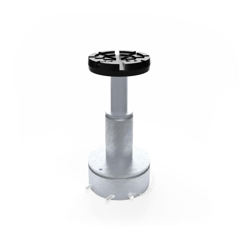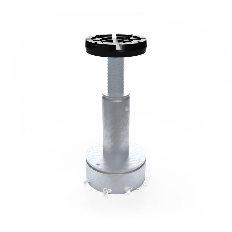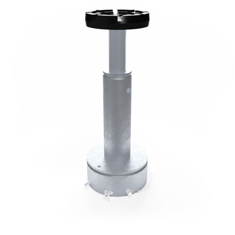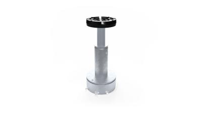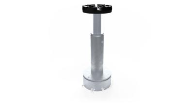 Le système vis-écrou porteur se compose d'une vis rotative et d'un écrou de levage à faible usure en Nylatron® de haute qualité. Un deuxième écrou de sécurité placé sous l'écrou porteur assure en outre la sécurité du système. Les bras porteurs sont sécurisés par un dispositif de blocage automatique. L'écrou de levage peut être contrôlé par l'utilisateur grâce à un contrôle visuel de l'usure facilement visible.