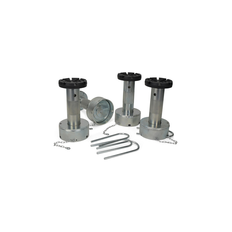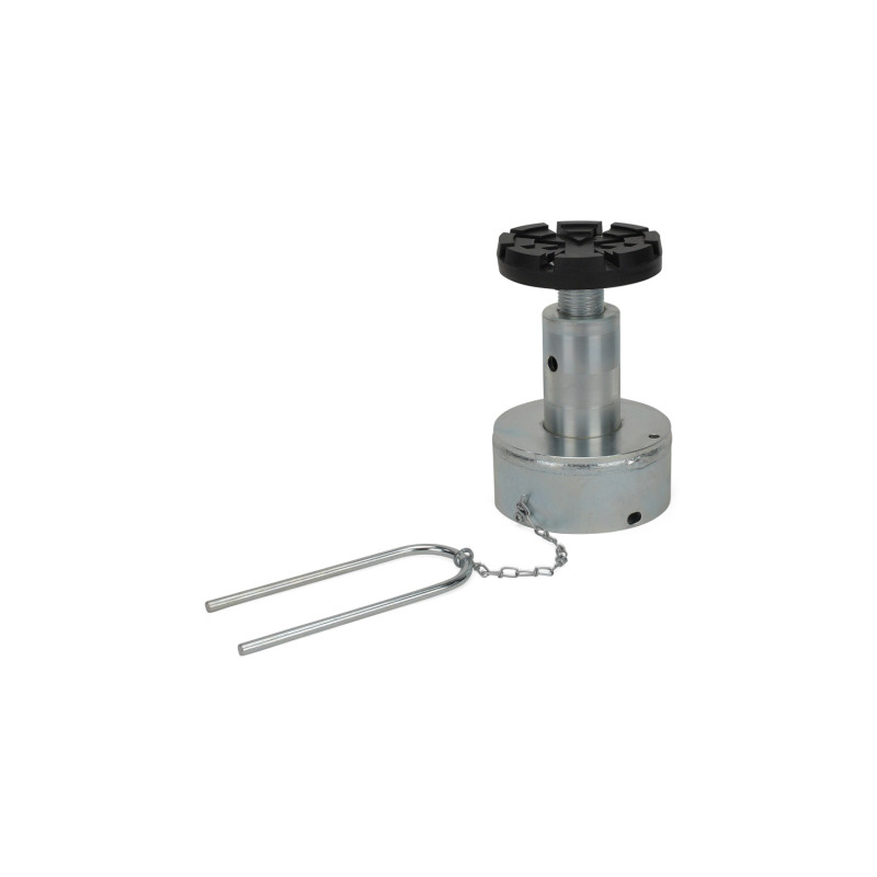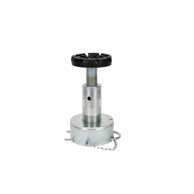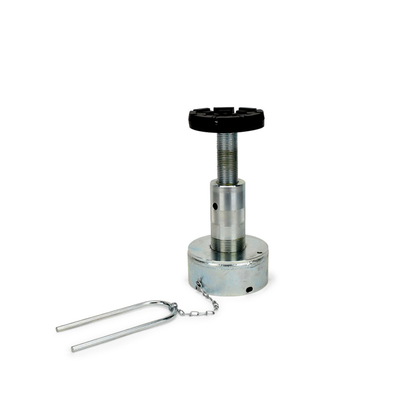 Le système vis-écrou porteur se compose d'une vis rotative et d'un écrou de levage à faible usure en Nylatron® de haute qualité. Un deuxième écrou de sécurité placé sous l'écrou porteur assure en outre la sécurité du système. Les bras porteurs sont sécurisés par un dispositif de blocage automatique. L'écrou de levage peut être contrôlé par l'utilisateur grâce à un contrôle visuel de l'usure facilement visible.